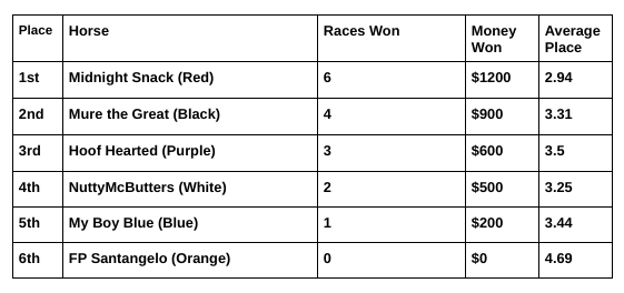 Welcome back to the DAR- The Most Exciting 20 Seconds in Sports! Before we dive into Season 2, let’s recap Season 1 with a look back at the finals standings (you can also watch the races on our YouTube channel- DAR Horse Racing):